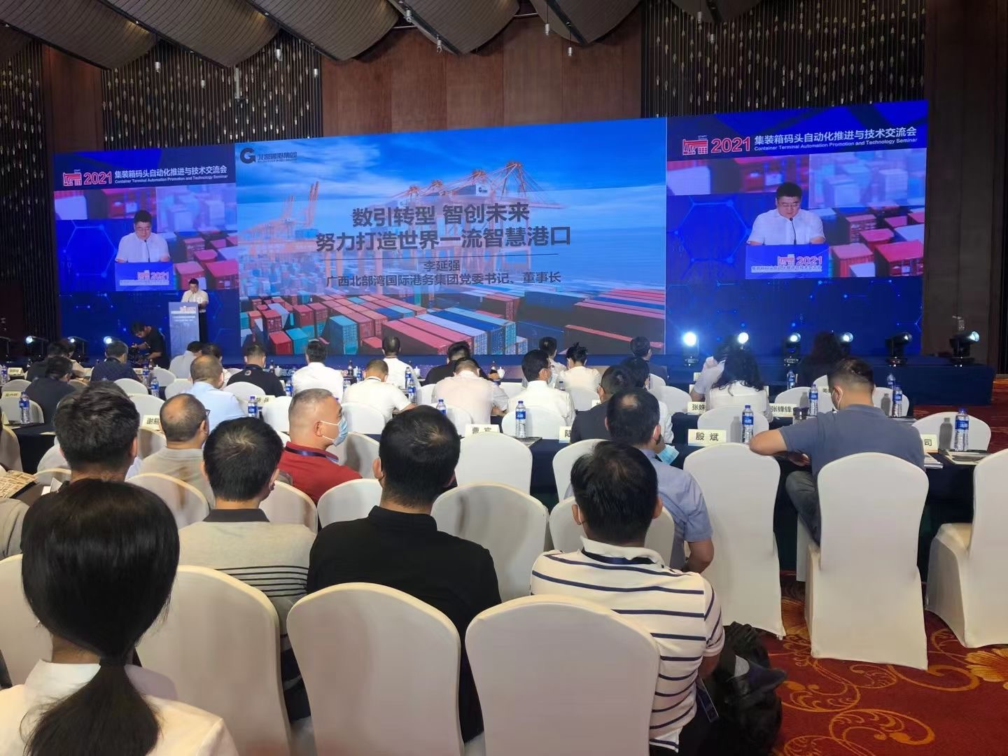 On September 23rd, 2021, at the " Container Terminal Automation Promotion and Technology Seminar" in Nanning, Guangxi, pioneers and experts in the construction of port automation terminals across the country, and industry leaders and professionals of scientific and technological innovation and technology all over the country gathered together to discuss the development plan of smart ports.