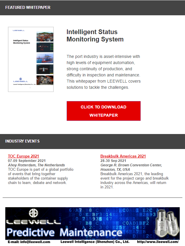 Currently, you can find Leewell by visiting the World Cargo News homepage or subscribing to the daily newsletter. In the WhitePapers column, you can also download the technical white paper of our intelligent status monitoring solution. Welcome to browse: